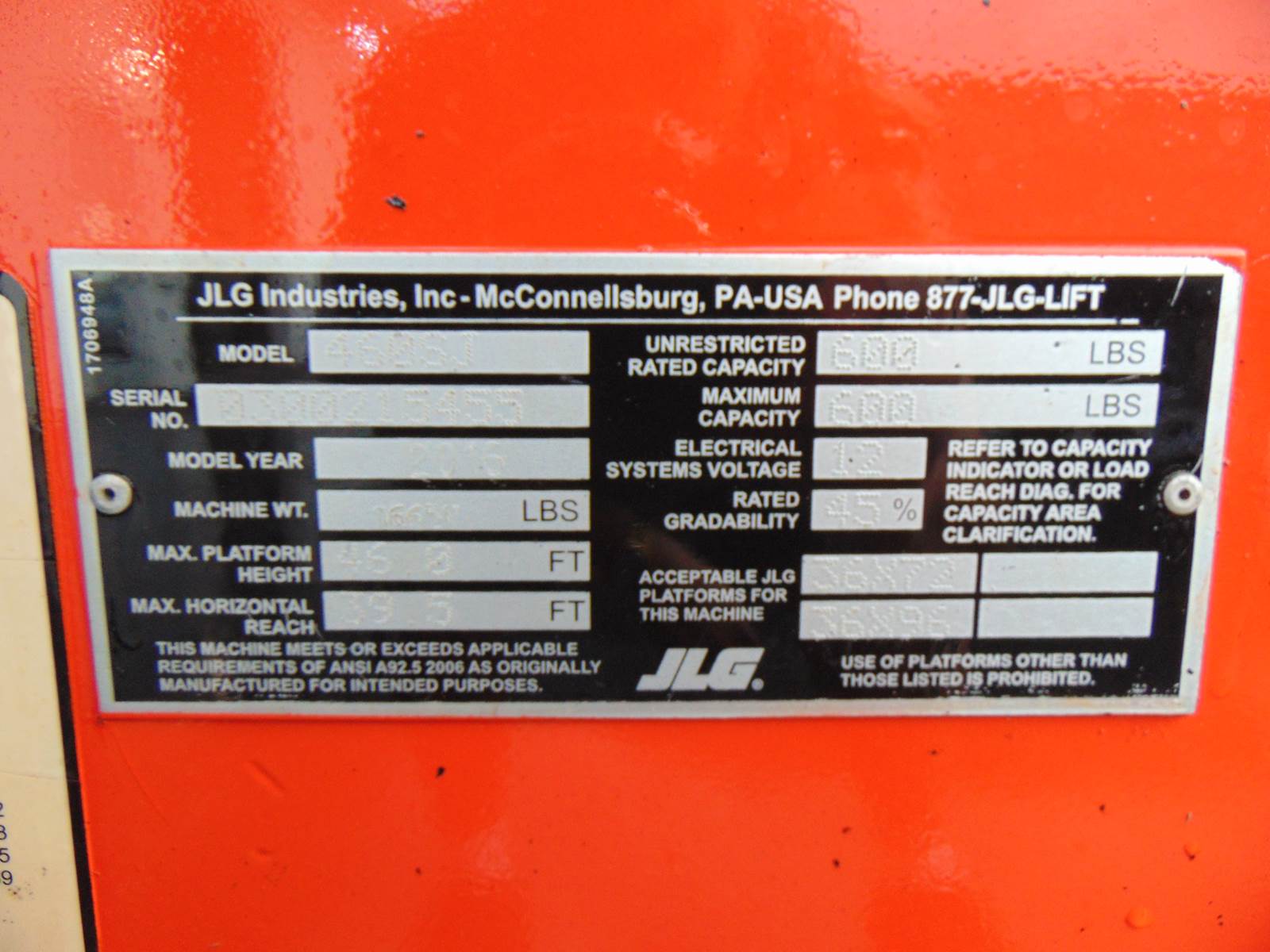 2016 JLG 460SJ BOOM LIFT W/ JIB